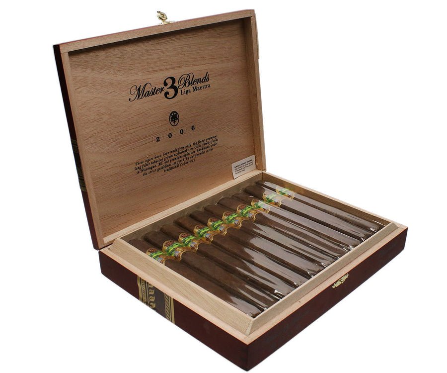 The Liga Maestra, the third release in Oliva’s artisanal Master Blends series, debuted in 2006 as a regular-production cigar with limited production due to the select tobaccos used. The Master Blends 3 Liga Maestra cigar combines a Connecticut Broadleaf wrapper from the United States with Nicaraguan binder and fillers to create a complex flavor profile with sweet and savory notes and a hint of spice.